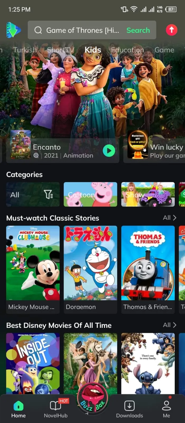 MovieBox caters to both kids and adults with a huge range of animated films and cartoon series. Watch beloved Disney and Pixar classics, Japanese anime, or modern 3D animations. The kids’ section is family-friendly and safe for younger viewers.
